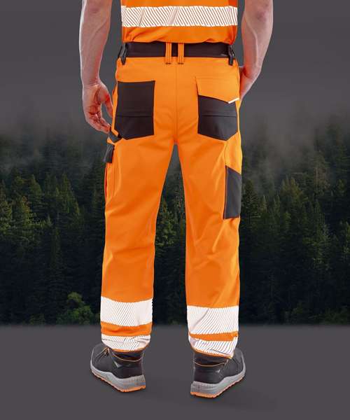 Supermely comfortable, a smart, tailored, highly visible safety-at-work trouser with a handsome, slim silhouette and multiple pockets. Ideal for durability and all-day wear.