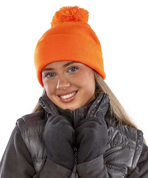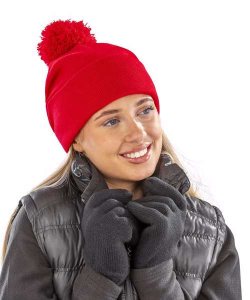 Heavyweight, double thickness knitted beanie with deep fold cuff and pom pom decoration.