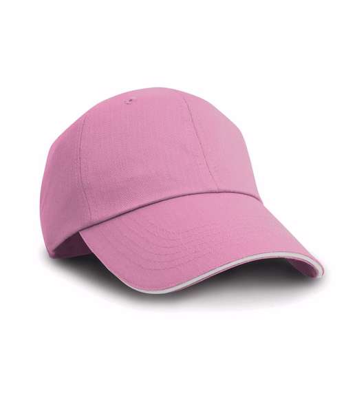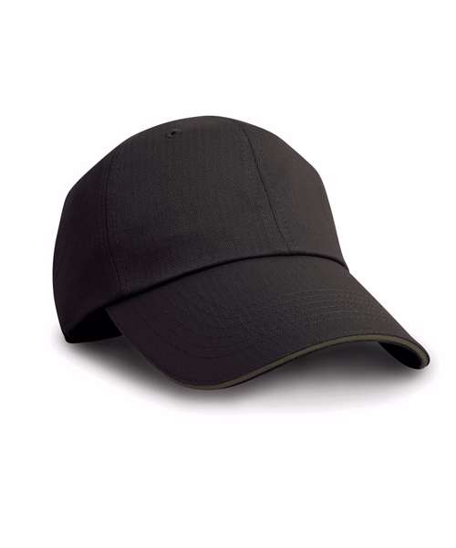 Herringbone weave. 6 panel. Low profile. Unsupported front panels. Pre-curved peak with 6 stitch lines. Contrasting colour sandwich peak. Stitched eyelets. Fabric size adjuster with antique brass buckle. Decoration Guidelines: Decorating methods: Embroidery & Transfer print Decorators access point: Open.