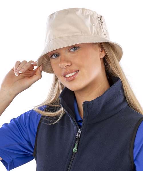 RC45X: Deluxe washed cotton bucket hat with side mesh panels