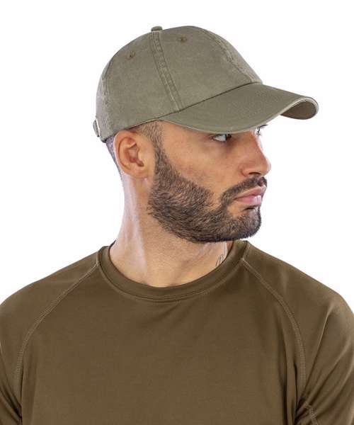 Soft peach finish. 6 panel. Unsupported front panels. Washed and unlined. Pre-curved peak with 6 stitch lines. Contrasting colour sandwich peak. Stitched eyelets. Fabric size adjuster with brushed metal buckle. Decoration Guidelines: Decorating methods: Embroidery & Transfer print Decorators access point: Open.