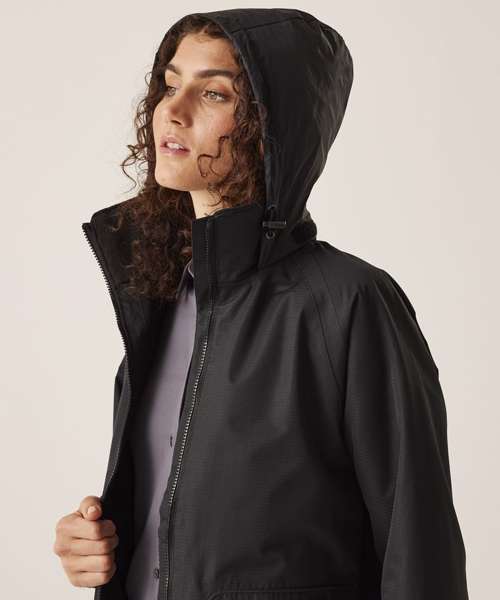When client meetings take place in the great outdoors, you'll need the smart Hudson jacket for full protection. The waterproof jacket comes with a fleece lining to trap in warmth. Wind won't get a look in with windproof fabric and taped seams. A shockcord hem and adjustable cuffs help to tailor the jacket to your fit. The women's jacket comes in a shaped design for a flattering fit.
