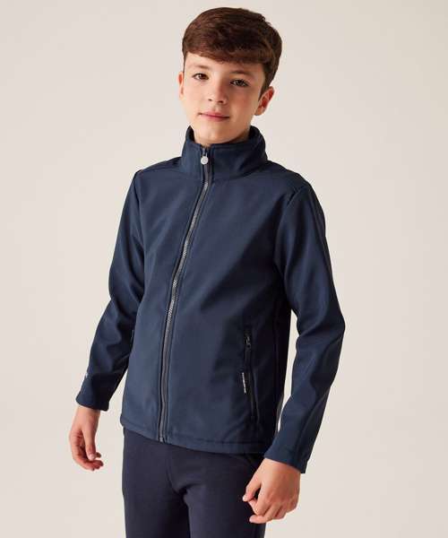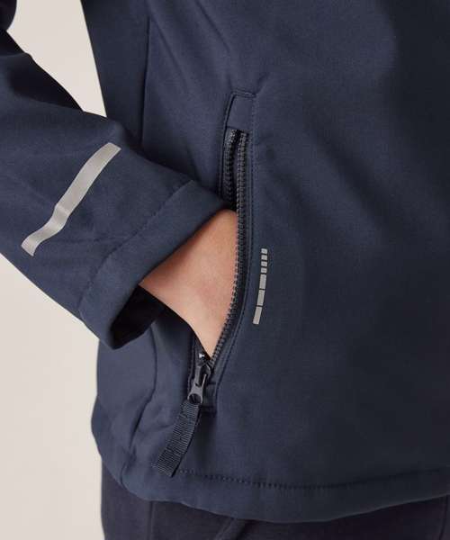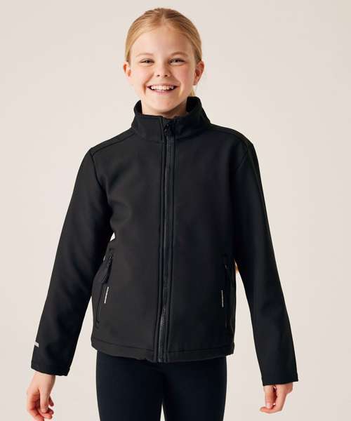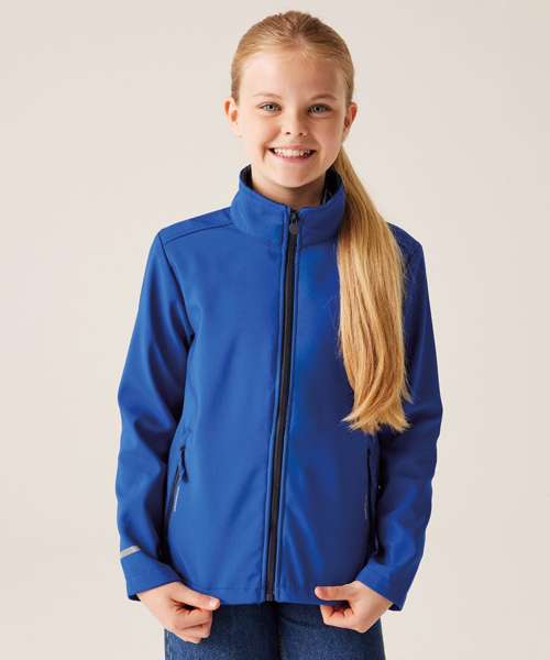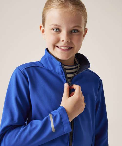 The kids Ablaze two-layer softshell from Regatta Professional is perfect for active little ones. This kids winter jacket is cosy and stretchy, featuring warm-backed softshell fabric – all designed to keep them warm and agile, on the go. Finished with reflective print for enhanced visibility.