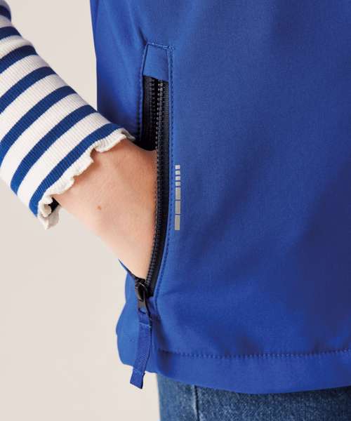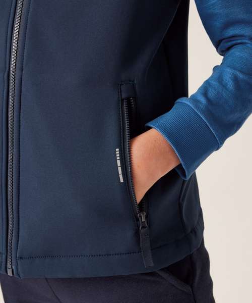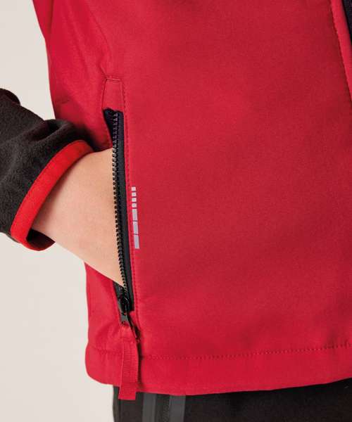 The Junior Ablaze softshell suit from Regatta Professional is designed for little adventurers. Stretchy and warm on the back, the softshell fabric stays comfortable for kids during their activities. Reflective details enhance visibility.