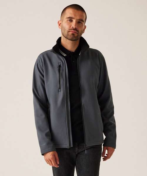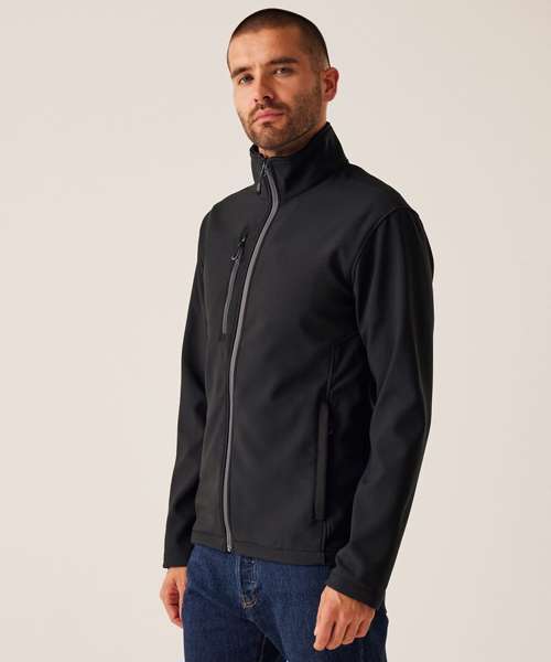 Made from 100% recycled softshell. Fully printable jacket is water-repellent and wind-resistant. Quick-drying, super-soft material.