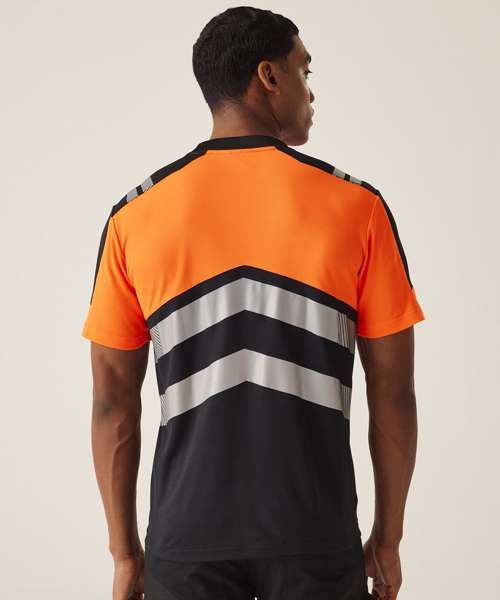 The Hi-Vis X-Pro T-shirt (Class 1) from Regatta Professional blends style and innovation. This work t-shirt is engineered with a bamboo and polyester blend for a durable yet soft finish, with underarm mesh panels and an antibacterial finish keeping you fresh. Prioritising safety, it adheres to multiple safety regulations, while the ID reflection technology easily identifies the direction you’re facing, in low-light settings. With UPF 40+, this high-visibility work t-shirt ensures added protection against the sun’s harmful rays.