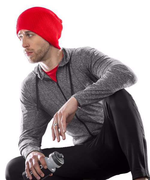 Super stretch lightweight t-shirt jacket hoodi in on-trend printed melange fabric with natural movement and sport cover.