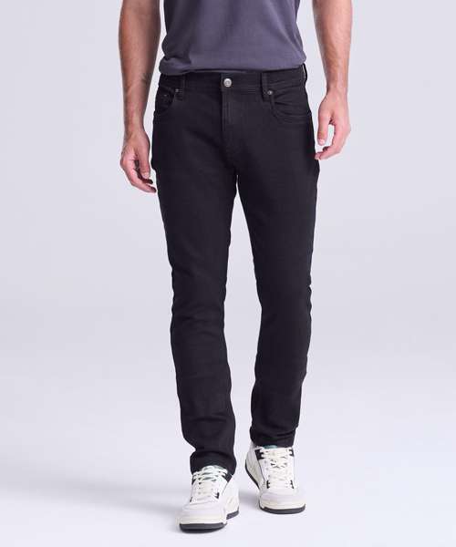 Slim fit. Stretch denim. 5 pocket styling. Light blasting & whiskering (blue washes only). Self-fabric belt loops. Shank button and YKK zip fly fastening. Metal rivet detail at pocket corners. Twin needle stitching detail.