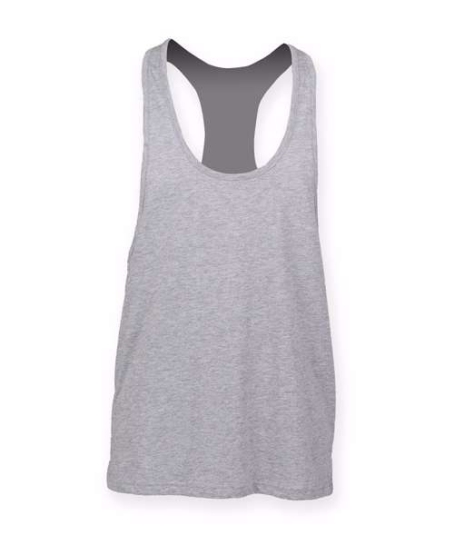Look cool while warming up in this muscle cut racerback in an on-trend longline fit style. Self-fabric binding around neckline and armholes. Tear-out label for easy rebranding. A great fashion staple and ideal for a body and mind customer.