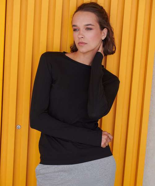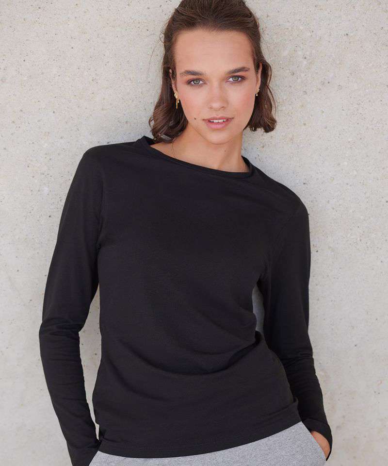 Break up the routine with this stylish stretch long sleeve in essential modern colours. Ribbed crew neck with back neck tape ensure a premium finish. It has a unique soft-hand feel with a modern longline fit. Soft stretch fabric. Supreme finish. Feels good. Features tear-out label for easy rebranding.
