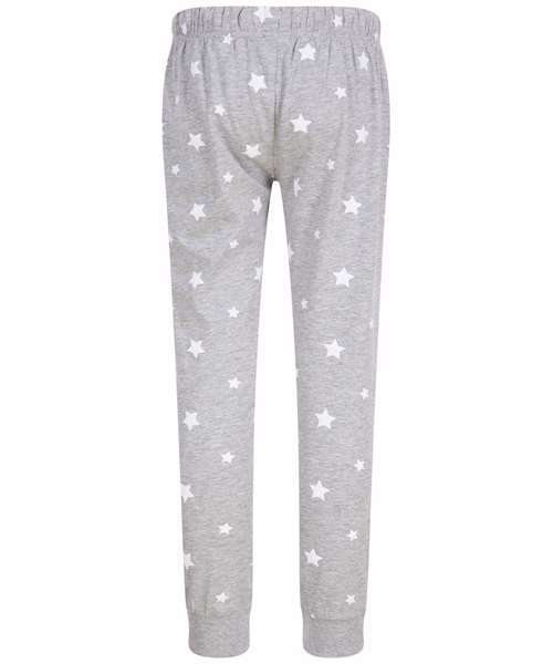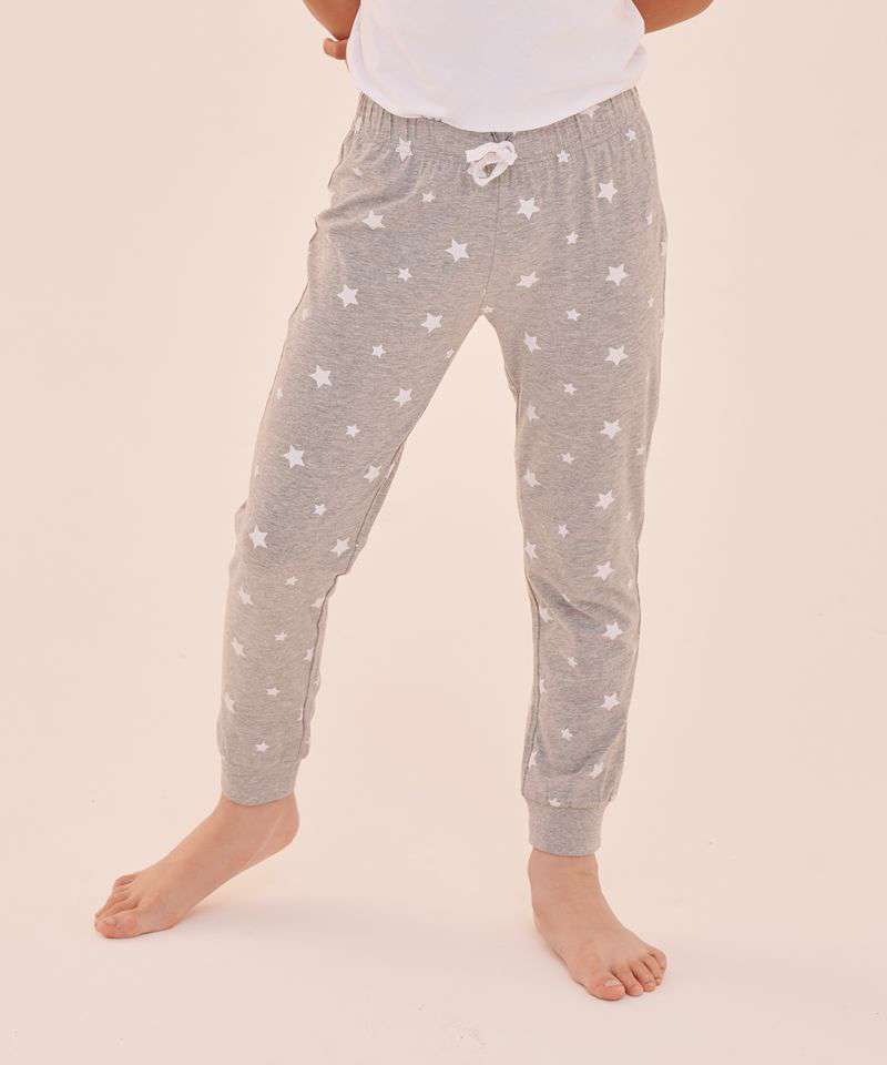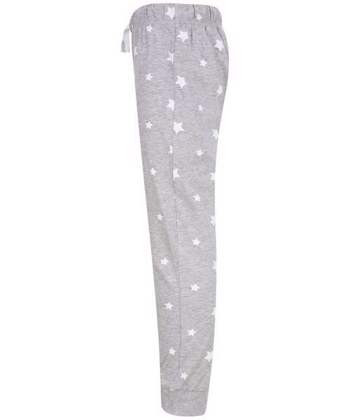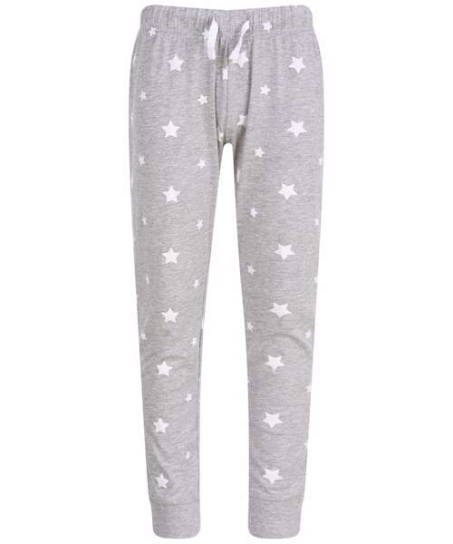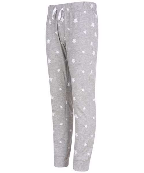 Stretch lounge pants with elasticated waistband and mock drawcord. Self-fabric cuffed hem. Tear-out label.