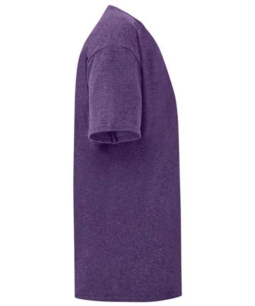 100% Combed ringspun cotton single Jersey. Heather Grey: 97% Cotton, 3% Polyester. Dark Heather Grey, Heather Navy, Heather Purple: 52% Cotton, 48% Polyester