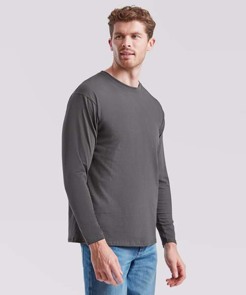 With a fine knit gauge for enhanced printability, the Valueweight long sleeve T is ideal for all kinds of garment decoration, offering a classic fit, a crew neck with cotton/Lycra® rib and a self-fabric back neck tape for comfort. Fruit’s Valueweight long sleeve T is available in a great range of colours.