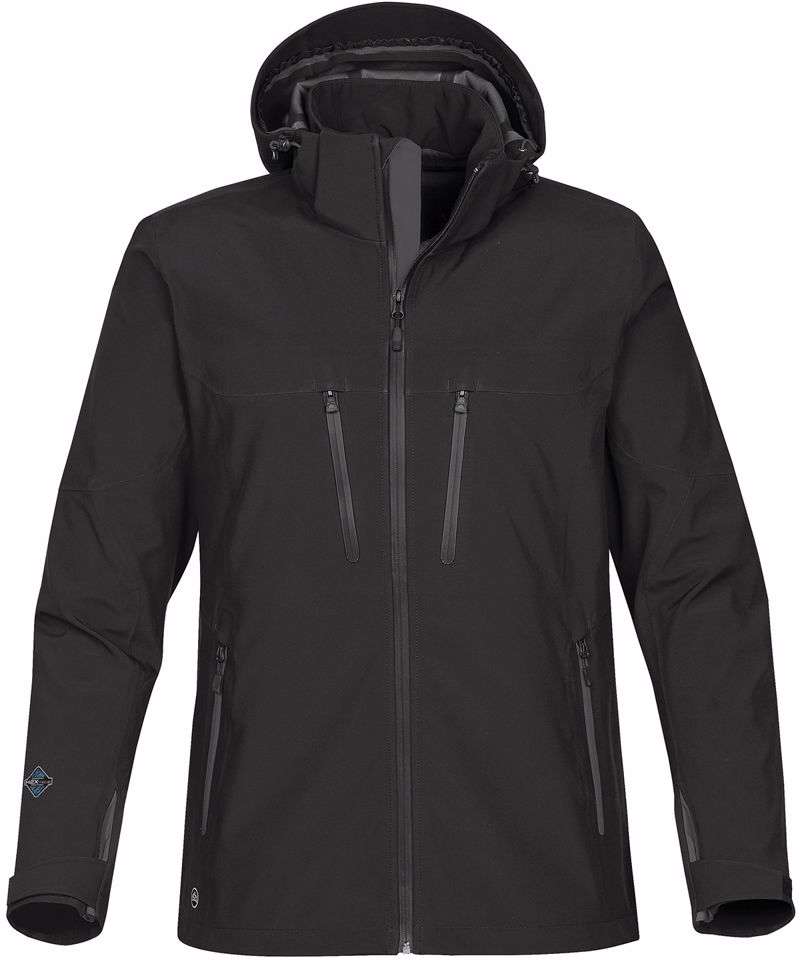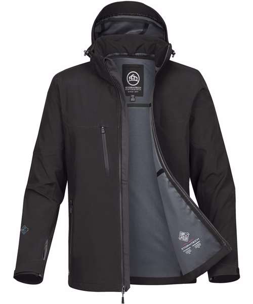 STORMTECH H2XTREME® 10,000. 3,000 Waterproof. Breathable outer shell. Sealed seams. Waterproof zippers. Detachable articulated storm hood. Adjustable shock cord hood. Adjustable hem.Dropped back. Dual chest pockets. Articulated action elbows. Adjustable cuffs with gusset.