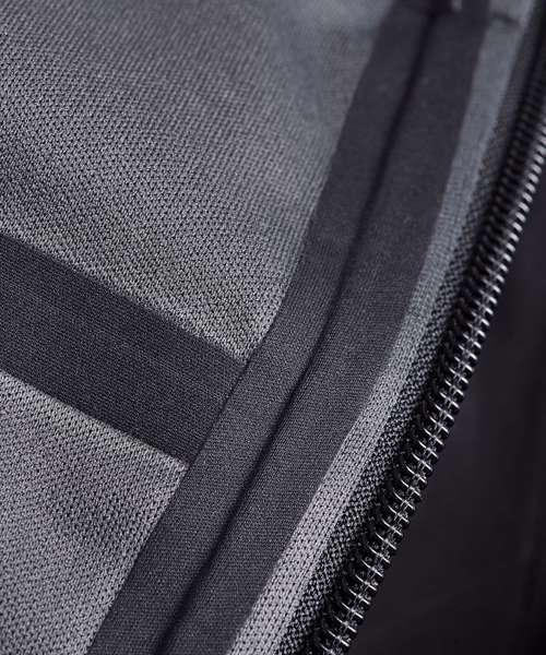 100% Polyester with mechanical stretch. Bonded with 100% Polyester single Jersey