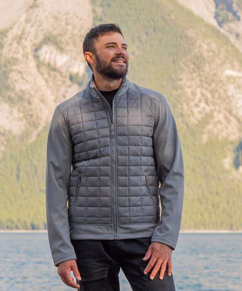 Flexible, versatile, thermal efficiency. The Appalachian thermal softshell jacket is ideally suited for all-season use, with a lightweight quilted Thermolex™ body and four-way stretch softshell panels. The durable water-repellent finish fabric on the main body helps to repel water in damp conditions, while the brushed tricot internal storm flap and adjustable hem with drawcord allow adjustment for maximum comfort. Built with recycled polyester and polyester fabric with 10% spandex to provide stretch mobility.