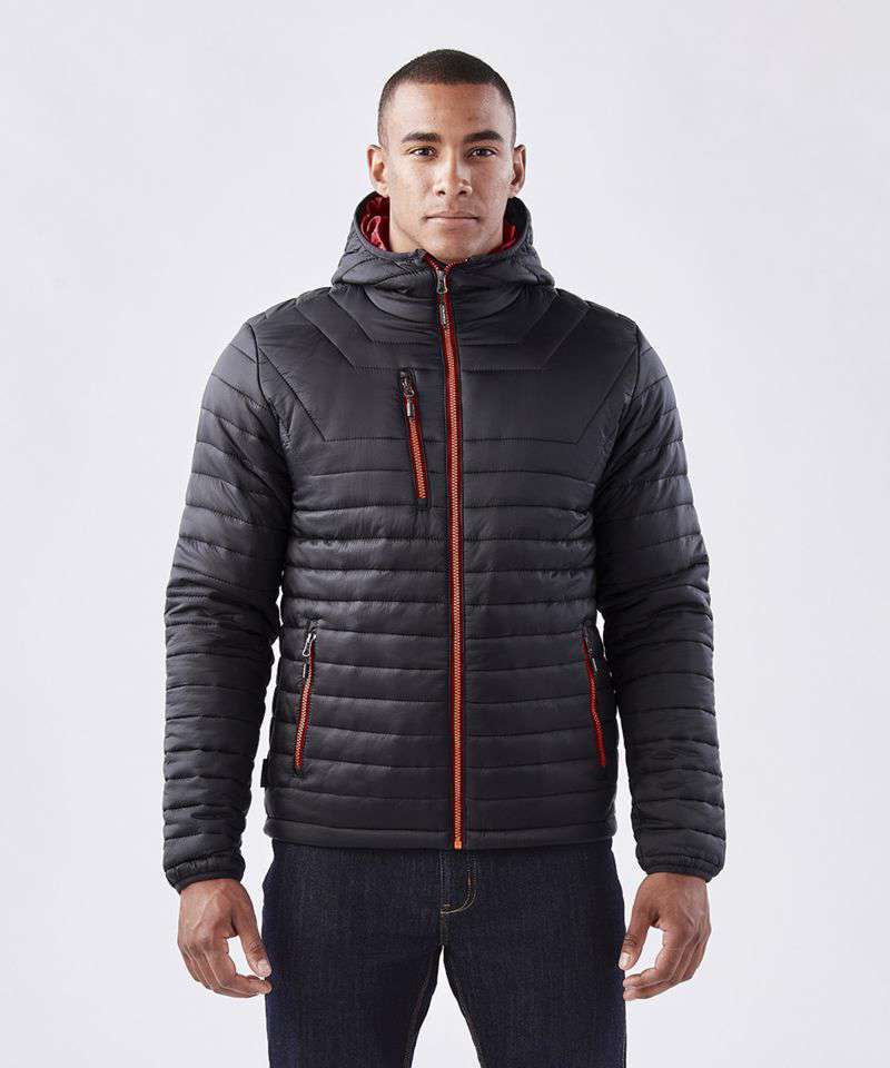 STORMTECH D/W/R durable water-resistant outer shell. Quilted body with ultra soft liner. Centre front vislon zipper with contrast zipper teeth. Elasticized cuffs. Attached hood. Adjustable hem. Set-in sleeves. Brushed tricot hand warmer pockets. Zippered pockets with garages. Chin saver. Internal full-length storm flap. Inside pocket. Internal media port. Embroidery access.