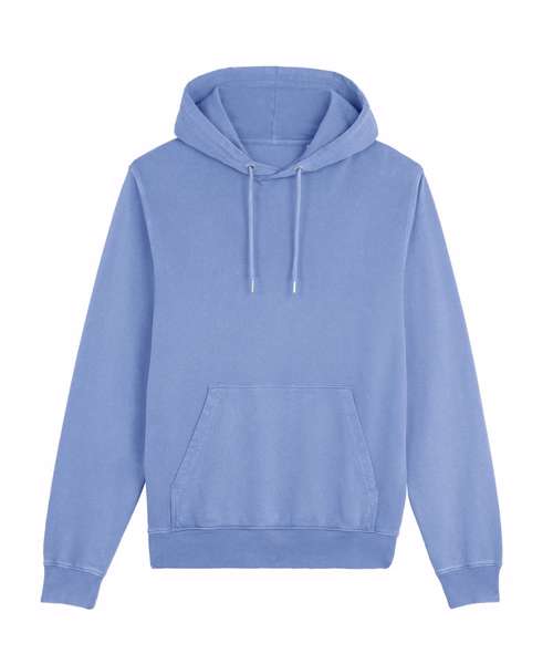 Unisex medium fit garment dyed hoodie sweatshirt. Set-in sleeve. Double-layered hood in self- fabric. Round drawcords in matching body colour with closed metal tipping. Metal eyelets. Inside herringbone back neck tape. Self-fabric half-moon at back neck. 1x1 rib at sleeve hem and bottom hem. Armhole, sleeve hem and bottom hem with twin-needle topstitch. Kangaroo pocket at front. Slight shading on seams to give washed look. Garment-dyed product: each garment may vary in appearance, colour may bleed, follow our care label. Read carefully print recommendations.