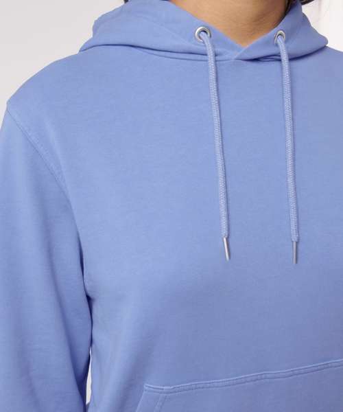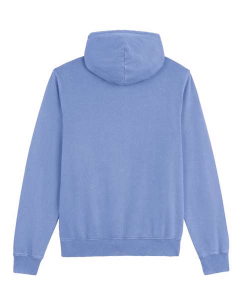 Unisex medium fit garment-dyed hoodie sweatshirt. Set-in sleeve. Double-layered hood in self- fabric. Round drawcords in matching body colour with closed metal tipping.