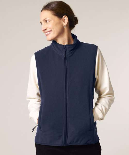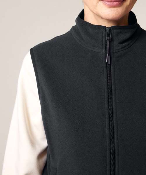 Premium women’s sleeveless fleece jacket in 100% recycled polyester. Modern fit. 300gsm polar fleece with an anti-pill finish.