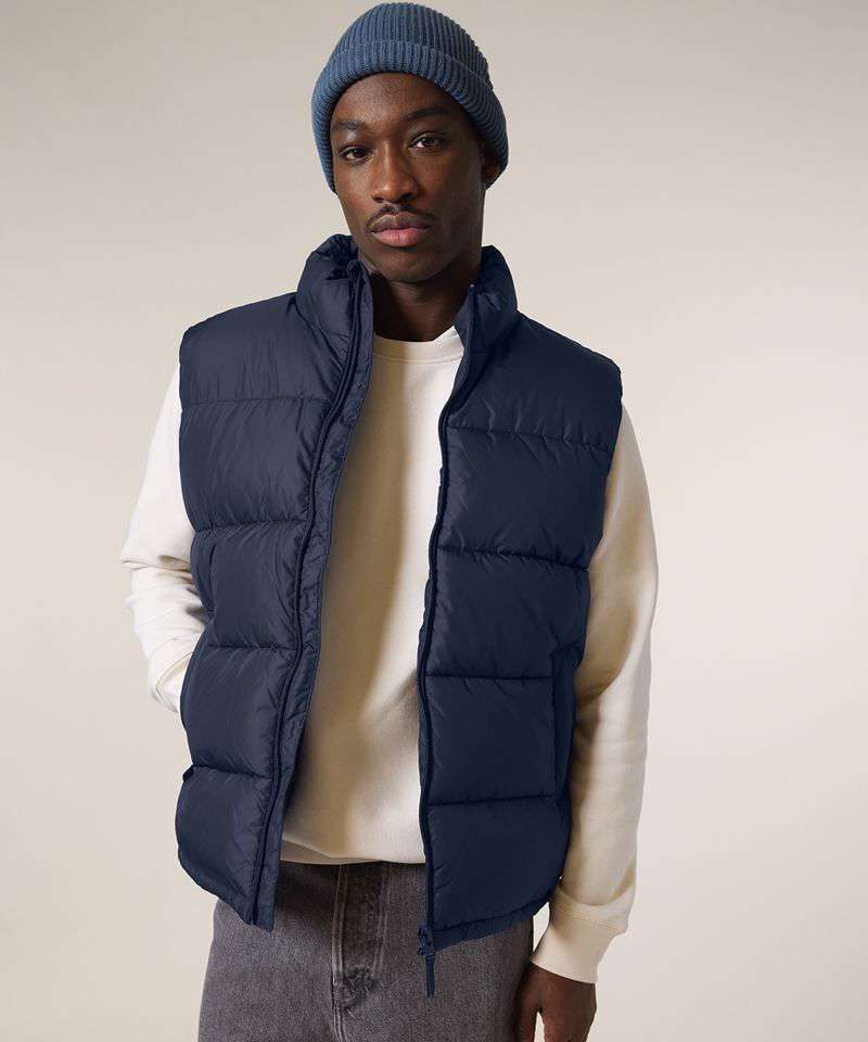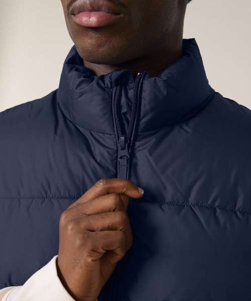 Premium unisex puffer gilet in 100% recycled polyester. High-performance with premium details. Innovative padding for maximum breathability and warmth at -15°C.