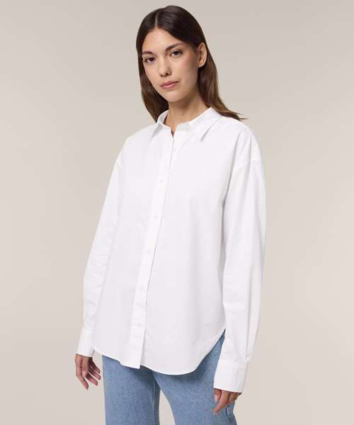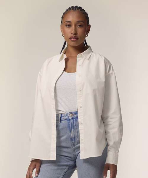 The Stella Styler shirt, for women, provides a relaxed fit in tight-weave poplin, offering a trendy retail-inspired fit. Made from premium 100% organic cotton, this crisp modern shirt is perfect for anyone looking for eco-friendly fashion that doesn’t compromise on style. At 130gsm, the Stella Styler is lightweight and breathable, yet the tightness of the weave makes it strong enough for any kind of decoration, from printing to embroidery. Dropped shoulders and a box pleat at the back offer a flattering, feminine fit, while details like a two-button cuff add a premium look and feel.