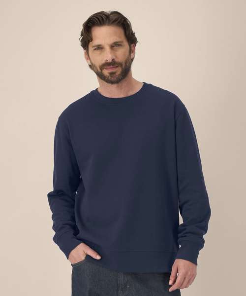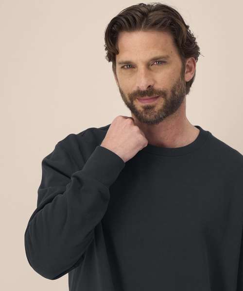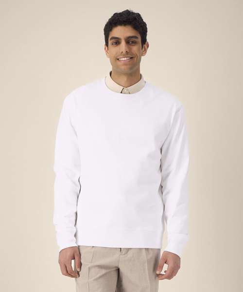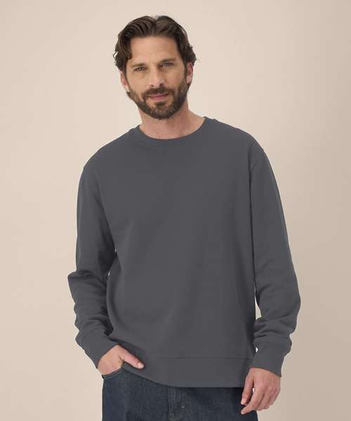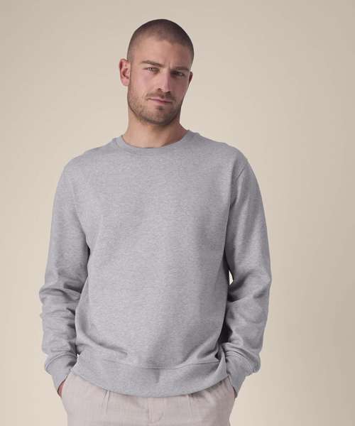 Unisex recycled cotton crew neck sweatshirt. Set-in sleeves. 1x1 rib at neck collar. Self-fabric back neck tape. Twin-needle topstitching on seams at shoulders, armholes, sleeve cuffs and hem. Contains 50% GRS-certified recycled cotton and 50% OCS-certified organic cotton, certified by Control Union CB-CUC-1393082.