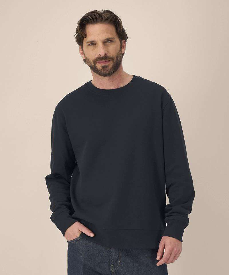 The Thinker is a unisex recycled sweatshirt with a clean medium fit, made from a soft recycled cotton blend. Designed for both comfort and structure, it features set-in sleeves, 1x1 rib at the collar and durable twin-needle topstitching at key seams. The self-fabric back neck tape adds a smooth interior finish, while the surface ensures excellent decoration results. Whether for corporate branding or lifestyle collections, this sustainable crew neck offers a reliable, low-impact blank built for long-term wear and standout customisation.