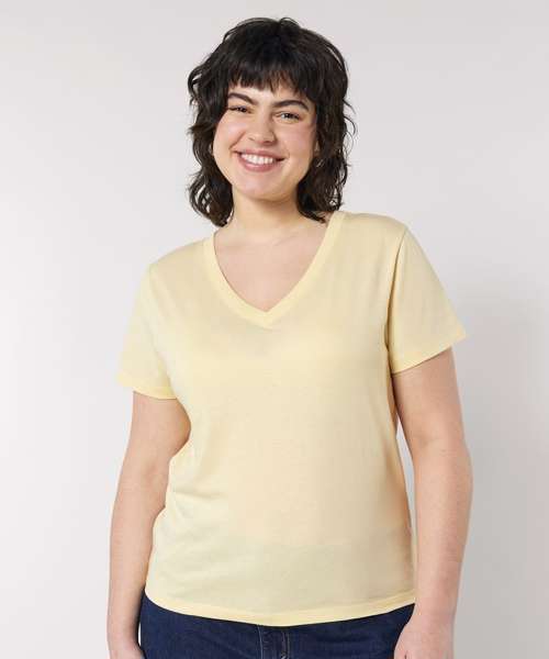 The women’s Stella Isla v-neck t-shirt comes in a weight of 155gsm, in a medium fit. Featuring a wide colour palette to choose from, its 100% organic ringspun combed cotton provides the perfect, smooth printing surface for decoration.