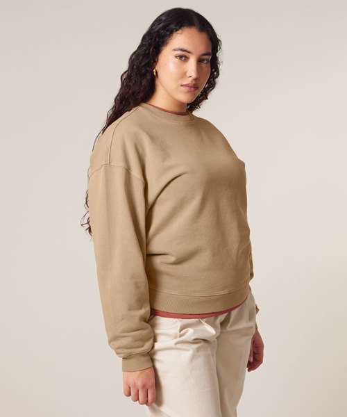 Premium, oversized, garment-dyed crew neck sweatshirt in 100% organic cotton, 350gsm. Streetwear-inspired fit and details. On-trend colours. Excellent printability.