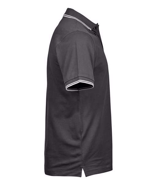 Flat knit collar with elastane. Mini piqué and tailored fit. Double pre-shrunk. Herringbone neck tape. Long-fibre cotton. Enzyme-washed. Silicone treatment. Clean finished placket. Certified organic cotton.