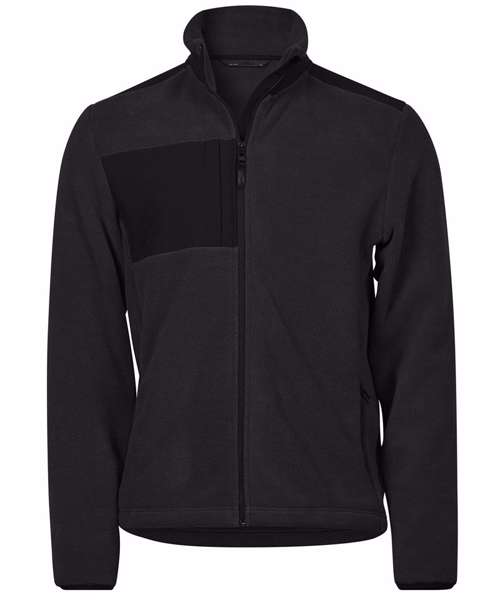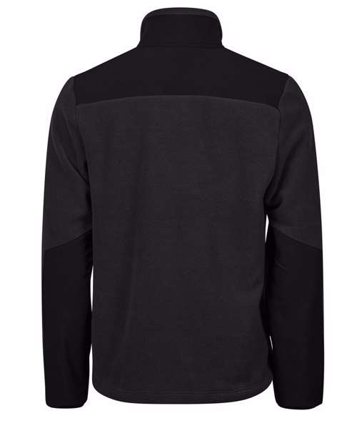 Two front pockets with zippers. Elastic banding at sleeve hem. Reinforced panels. SBS zippers. Anti-pilling fleece. Chest pocket. Certified recycled polyester.