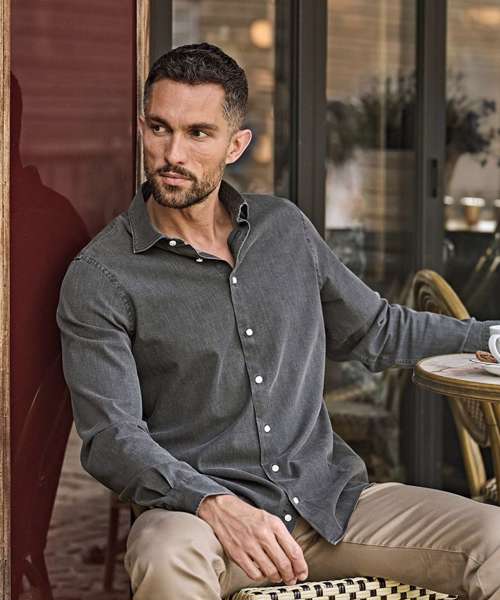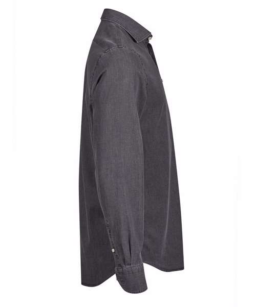 The Denim shirt offers a comfortable fit with casual refinement. Garment-washed, it’s crafted from a fine long fibre cotton and elastane blend, providing a soft stretch that enhances freedom of movement. It’s designed with a wide spread collar and a curved hem, while the Ascolite button-wrapping system ensures the buttons remain intact through repeated washing.