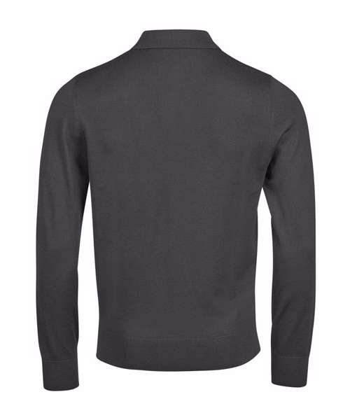 Tailored fit. Flat knit collar. Fully fashioned. Knitted rib at hem and cuffs. 30˚C washing on wool programme. Quality Italian merino/polyacrylic yarn.