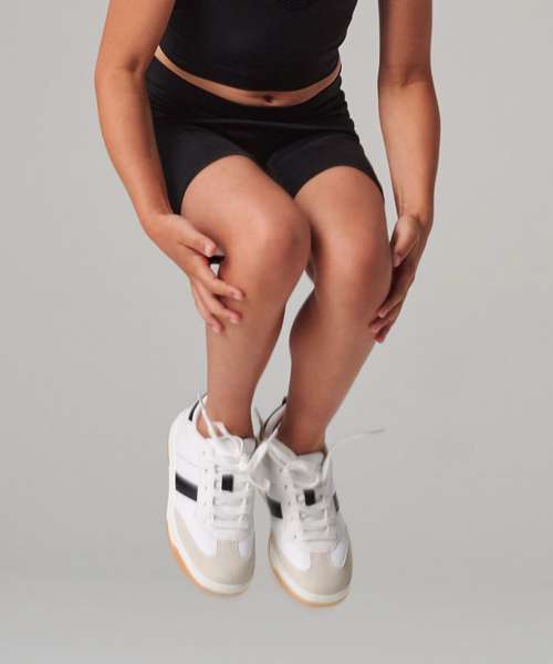 High-waisted, fitted stretch shorts in melange fabric (Dark Grey Marl). Seamless knit for comfort. Blind stitching at hems and grown-on waistband. Tombo tear-out label.