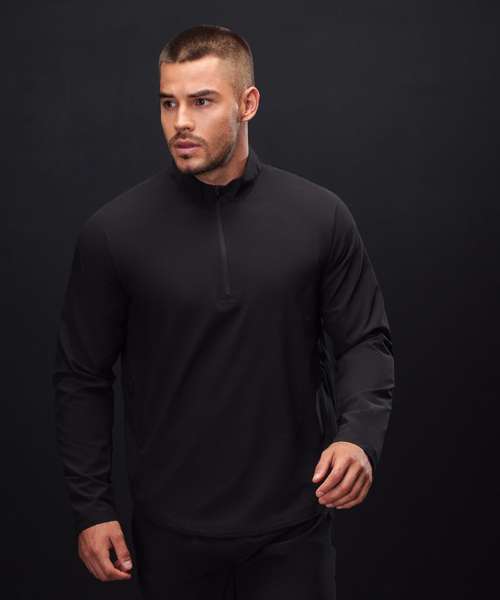 Technical 1/4-zip top made with four-way stretch microfibre fabric. Unisex. Lined. 1/4-zip with snap-down pull. Self-fabric zip guard with inner zip facing. Concealed zip side pockets on side panel seams. Funnel neck collar with self-fabric facing. Angled side panels. Self-fabric hanging loop at centre back neck. Top-stitched seams with twin-needle stitched hems. Tear-out label.