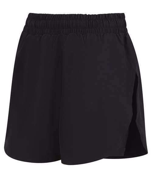 Women’s double-layer sports shorts. Four-way stretch fabric. Undershort made from stretch interlock fabric with wicking properties, and with phone pocket on left-hand side (as worn). High side vents for easy movement. Self-fabric elasticated waistband. Internal drawcords.