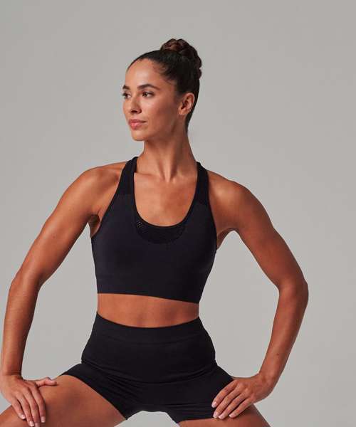 Sweat, stretch and play in this seamless crop top - the perfect option for all activities. With removable padded cups suitable for low impact and mesh inserts on front and back, this style is the ultimate choice for comfort, flexibility and style.