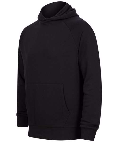 Keep it comfy in this on-trend unisex athleisure hoodie, featuring a longline slim-fit fora performance feel that also offers street style. Cut from an ultra-smooth brushed back fleece cotton-poly blend, this hoodie has an overhead hood, pouch pocket and ribbed trims for a custom fit. Finished with a tear-out label to make rebranding easy.