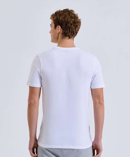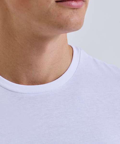 Organic cotton fabric. Crew neck. Short sleeve. Lightweight. Twin-needle stitching on hem and arms.