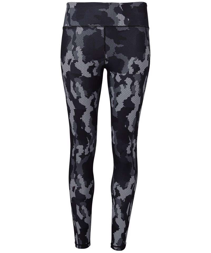 Full-length leggings. Soft-stretch fabric. Elasticated waistband. Inside coin pocket. Contrast overlock stitching. Hexoflage® camo print. We recommend using block out vinyl and inks.