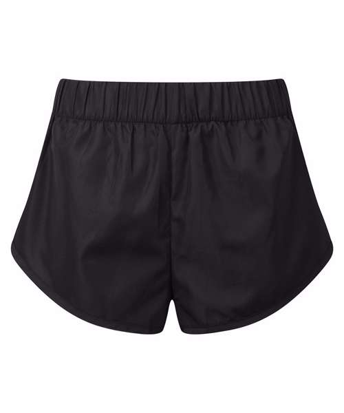 Wicking fabric. Elasticated waist. Inner liner brief for support. High thigh length. Lightweight. Zip pocket to back for storing essentials. Binding detailing to hem and sides of shorts. We recommend using block out vinyl and inks.