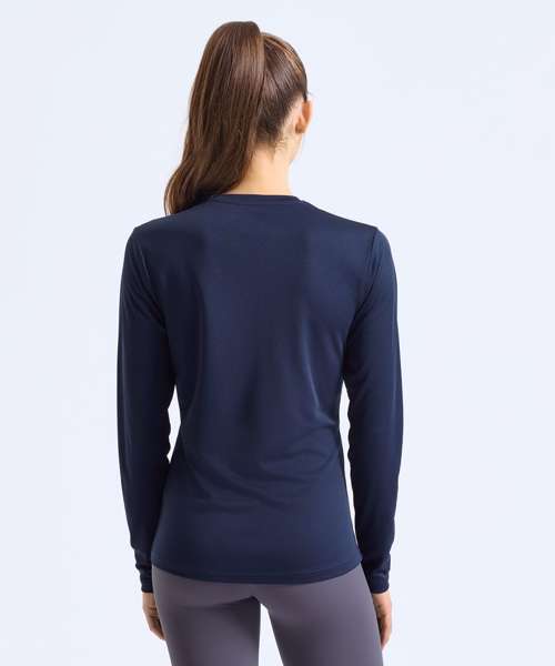 Wicking fabric. Stretch. Crew neck. Long sleeve. Lightweight. Twin-needle stitching on hem and arms. Mesh back. We recommend using block out vinyl and inks. UPF 40+.