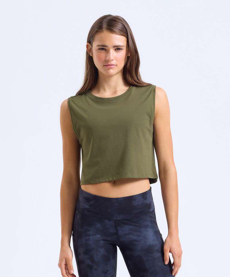 Cropped tank. Relaxed fit. Crew neck. Certified organic cotton.
