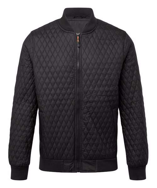 Tonal coil zip on centre front with signature zip puller. All over Diamond stitched baffle quilting. 160gsm lightweight polyester fill. Fully-lined in tonal polyester. Welt pockets. Elasticated hem, cuffs and collar. Internal coil zipped chest pocket. Internal zipped opening for embroidery access. Product contains no branded neck label.* Removable Kimble or looped garment tags. Inner seam label holds important product information on one label with a second label containing brand information which can be cut-away.