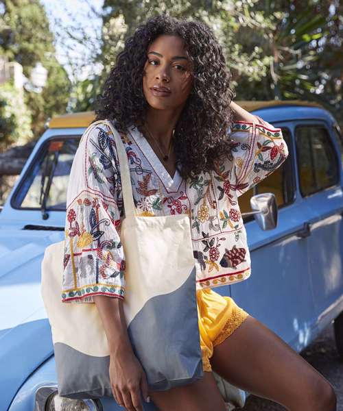 The Organic cotton wave print maxi tote combines sustainability with laidback style. Made from organic cotton, featuring an abstract swirl pattern, this tote bag provides the perfect canvas for personal decoration. Whether for daily errands or beach outings, it offers an eco-friendly and stylish solution for everyday needs.