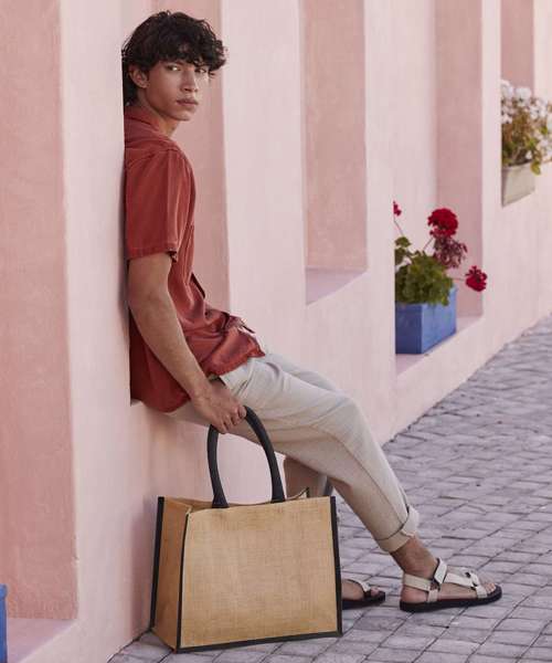 Every piece in the unlaminated Natural Starched Jute collection has angular edges and a sturdy construction for more boxy styling and structured storage. The fabric is tactile to the touch and organic in aesthetic, yet still robust and reliable. This classic shopper will look the part, whether browsing high street stores or picking up groceries at a farm shop. Contrast colour handles add an extra touch of rustic charm.