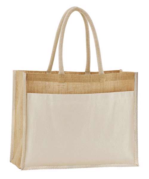 Every piece in the unlaminated Natural Starched Jute collection has angular edges and a sturdy construction for more boxy styling and structured storage. The fabric is tactile to the touch and rustic in aesthetic, yet still robust and reliable. This jute shopper is a multifunctional must-have, finished with a print-friendly front pocket made from 100% organic cotton canvas. Cotton carry handles ensure complete comfort. Also available in a smaller midi size (WM483).