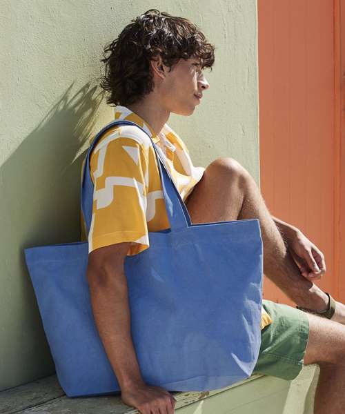 Large capacity. Can be carried by hand or over the shoulder. CutAway label for ease of rebranding. 100% Certified organic cotton.