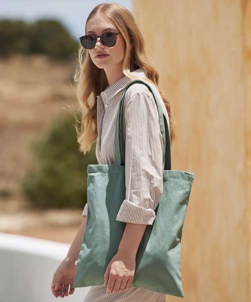 Premium heavyweight fabric. Can be carried by hand or over the shoulder. Handle length 67cm. 100% Certified organic cotton.